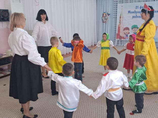 Ведущий: Россия — многонациональное государство. Каждая нация — это неповторимая культура, история, традиции и, конечно же, язык. Более 130 языков звучат в нашей стране. Какие языки мы можем услышать в нашем крае? (ответы детей). Когда вы были очень маленькие ваши мамы пели вам песенки и потешки на вашем родном языке. Давайте вспомним их.